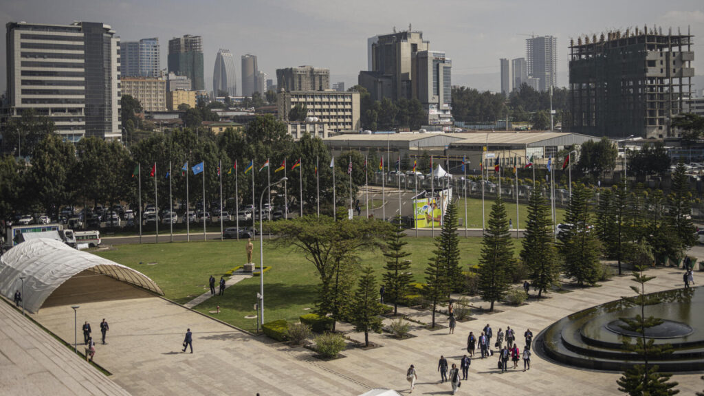 Antoine Galindo : l’Ethiopie justifie l’arrestation du journaliste français en lien avec son accréditation (Photo de l’entrée où s’est tenu le sommet de l’Union Africaine à Addis Abeba le 18 février 2024 et pour lequel était accrédité Antoine Galindo)