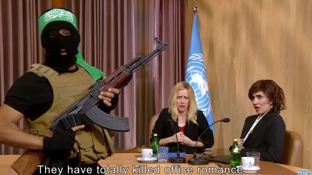 Les auteurs et comédiens d’Eretz Nehederet vont donc très loin, donnant l’impression de rire de tout, sans limites… Et pourtant, ils s’interdisent de critiquer l’armée israélienne et n’ont pas un mot pour les 24 000 morts recensés à Gaza par le ministère de la Santé du Hamas.